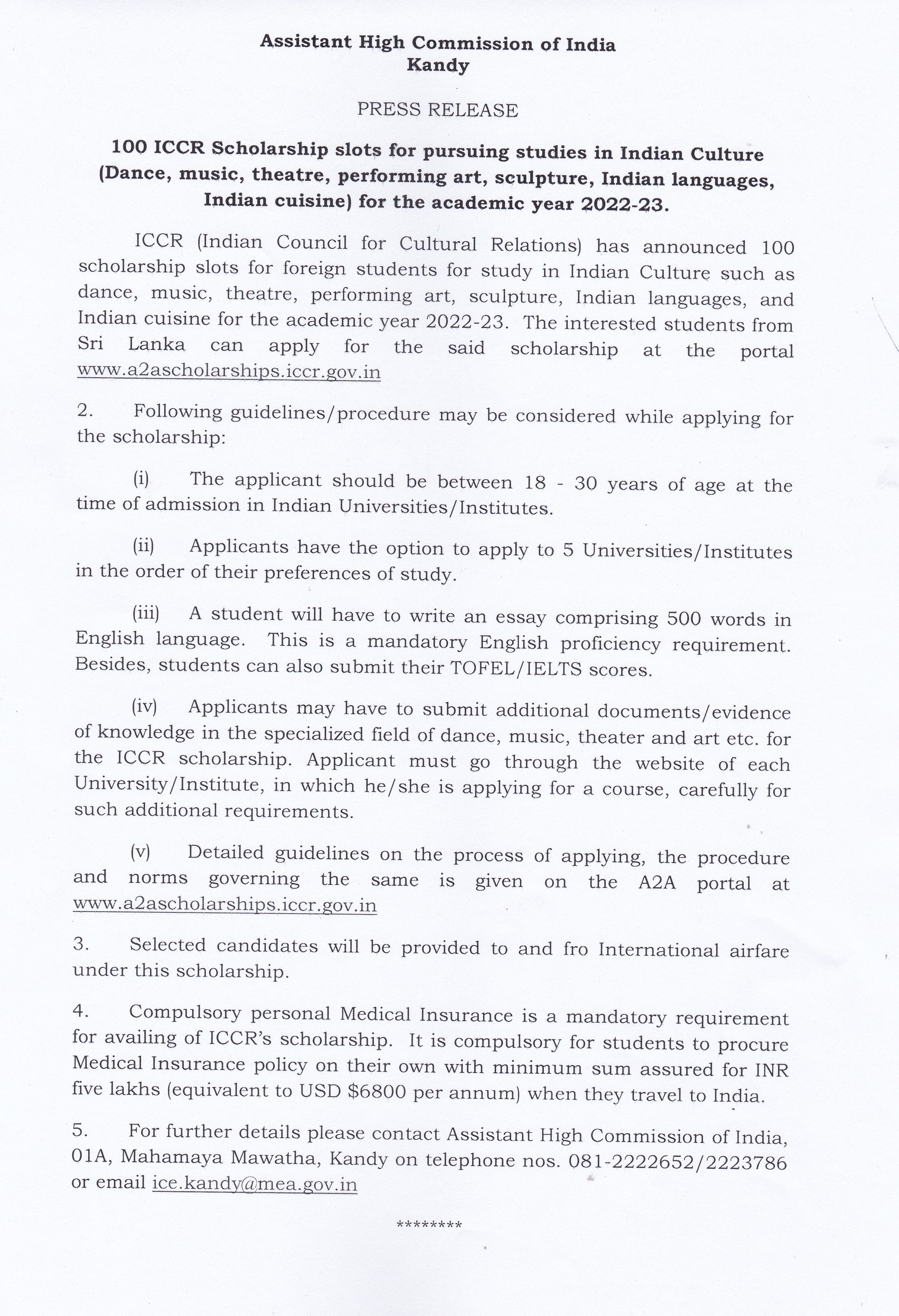 100 ICCR Scholarship slots for pursuing studies in Indian Culture