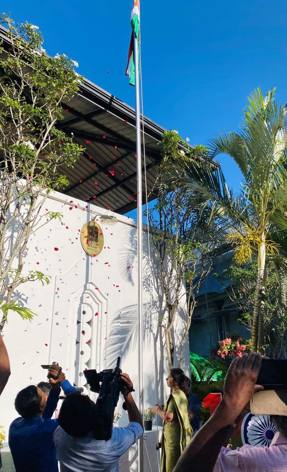 The 75th Republic Day of India was celebrated on Friday on 26th January 2024 at India House (the residence of the Assistant High Commissioner of India) in Kandy. On this day, the world’s largest constitution came into force. The morning function commenced with unfurling of the National flag of India at 08:15 AM and reading out of special message of Hon’ble President of India by Assistant High Commissioner, Dr. Athira S. Members of Indian diaspora, media fraternity, friends of India and staff members participated on the occasion.