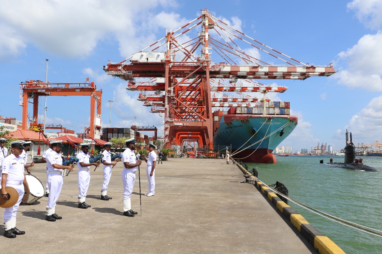 1. Indian Navy’s submarine INS Vela, arrived Colombo today on a three-day visit. The submarine was accorded a ceremonial welcome by the Officer of the guard and band of Sri Lanka Navy.
