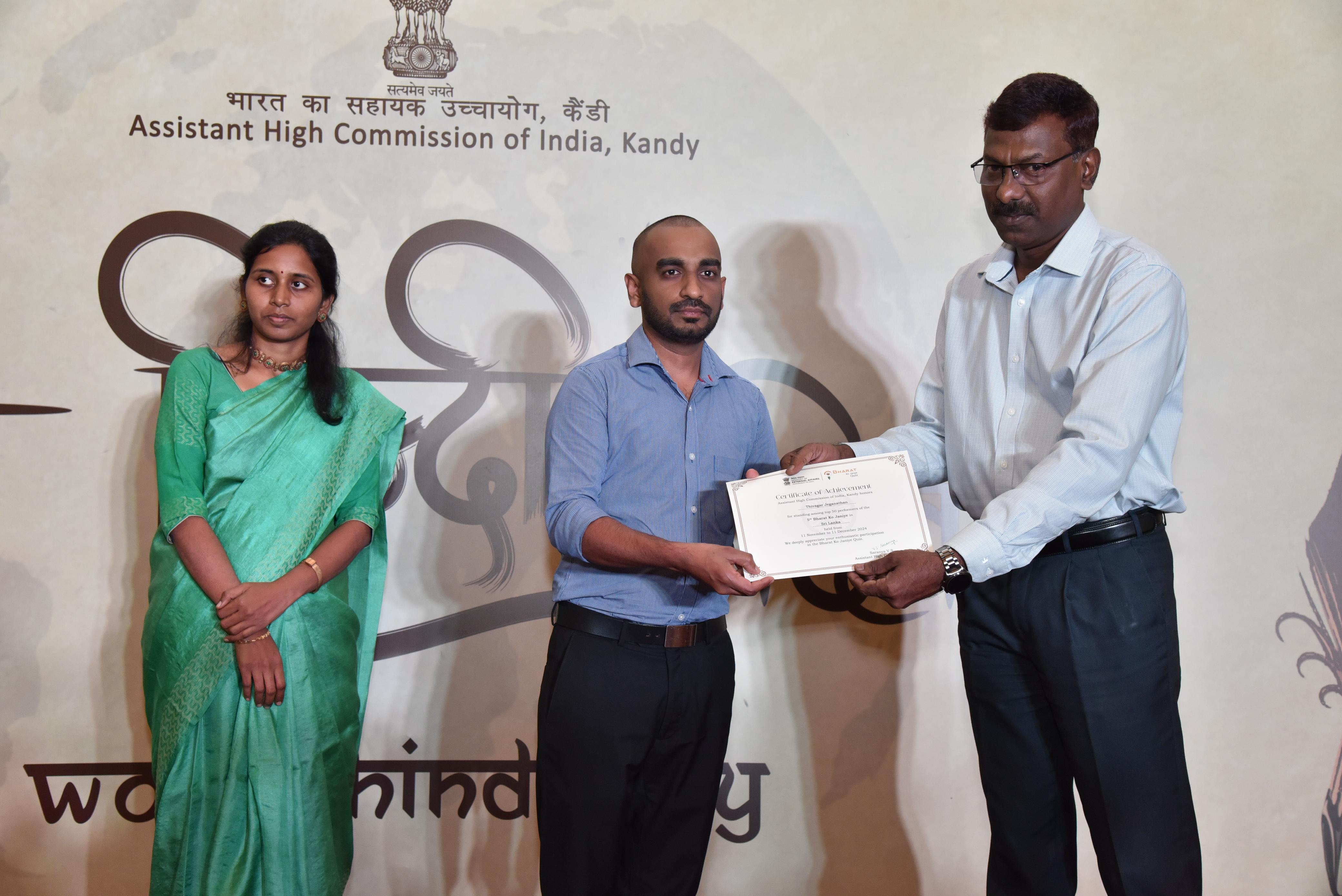 3. During the week prior to the event, Hindi competitions were organised for students, in which more than 100 participants from various institutes, pirivenas and schools took part. Competitions were also organised for local staff of AHCI Kandy. Winners of various Hindi competitions were awarded certificates of appreciation, gifts as well as cash prizes.